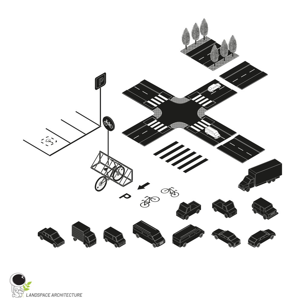 Isometric Urban Furniture Kit in both ai and PSD format for Adobe Illustrator and Photoshop.
