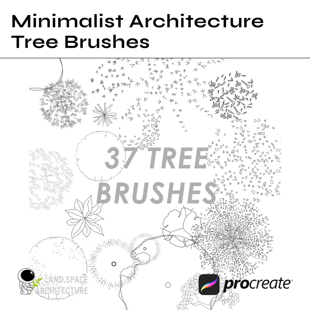 37 tree brushes and 15 grass brushes in Procreate iPad