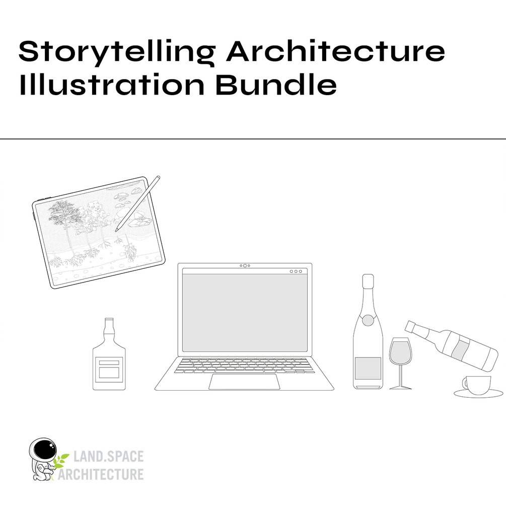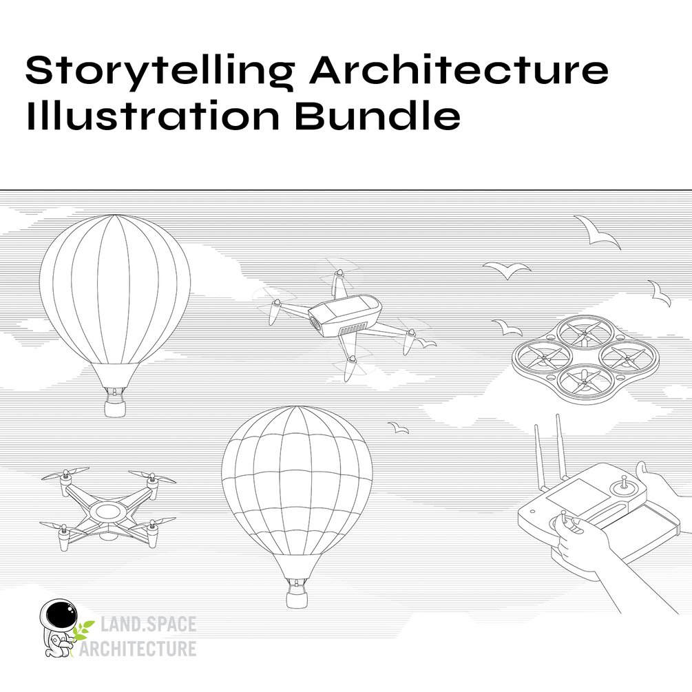 The bundle includes phone and hands, iPad, laptop, sky background, birds, drone, comic dialogue, wine sets, airplane window, etc. (.ai formats) for Architecture and Landscape Architecture illustration. And the source file in the tutorial.